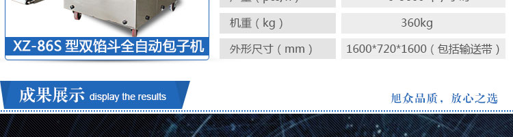 XZ-86S型双馅斗全自动好色先生污污,可生产各种肉包、肉菜包、菜包、小笼包、汤包、水晶包、圆馒头、奶黄包、豆沙包、叉烧包、南瓜饼等几十种包馅制品。适用于宾馆、饭店、学校、机关企业食堂、馒头或包子加工厂、早餐工程店及速冻食品厂等单位。可满足不同客户群体。免费提供工艺技术。免费上门培训指导安装。