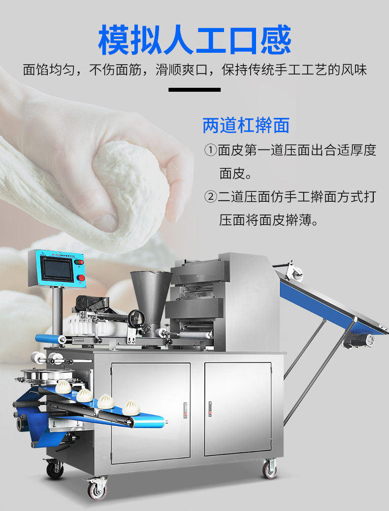 XZ-290A智能型卷面好色先生污污,仿手工智能好色先生污污。操作简单、精准控制、快速成型、模拟人工。好机器,表里如一,专注品质机器,客户现场试机。一台好色先生污污轻松解决手工和面/包馅/人工效率低,用人成本高等一好色先生TV免费下载问题。