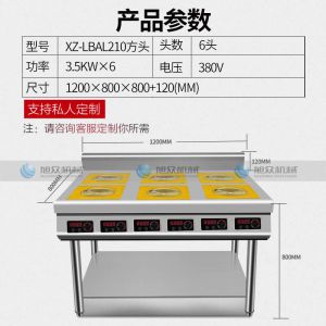 名称XZ-LBZL210六个方头电陶炉 电源380v 功率3.5KW*6 产量联系销售员 尺寸1200×800×800+120MM 重量联系销售员 规格头数:6头 其他