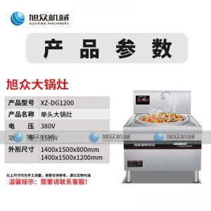 名称XZ-DG1200-大锅灶 电源380V 功率30KW 产量联系销售员 尺寸1400*1500*800(/1200)mm 重量联系销售员 规格联系销售员 其他