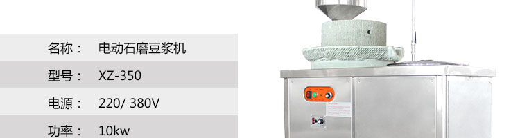 名称XZ-350型电动石磨豆浆机 电源220/380V 功率10kw 产量30kg/h 尺寸1000*550*1100mm 重量 规格 其他
