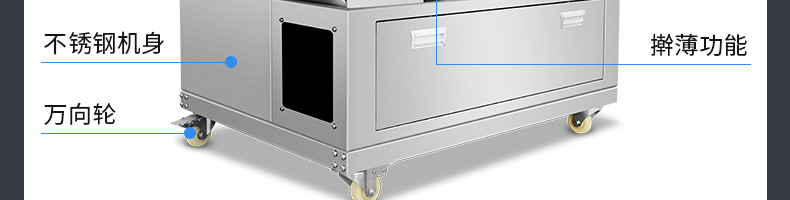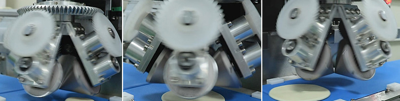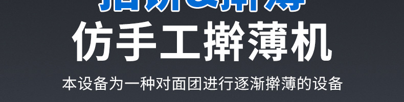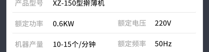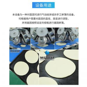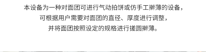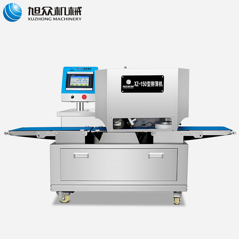 XZ-150型擀薄机,为一种对面团可进行气动拍饼或仿手工擀薄的设备,可根据用户需要对面团的直径、厚度进行调整并将面团按照设定的规格进行搓圆摔擀薄。