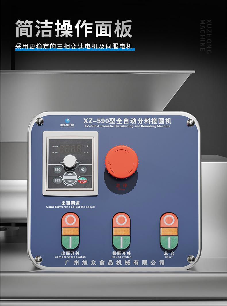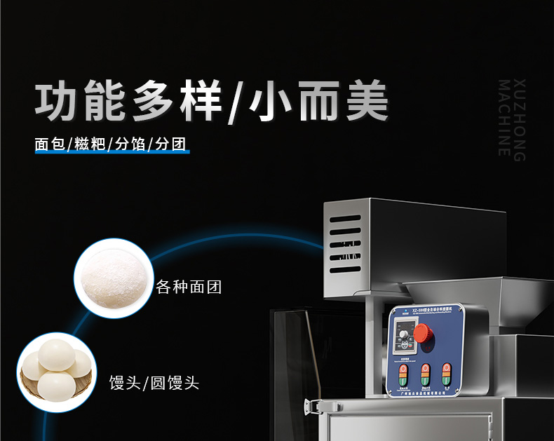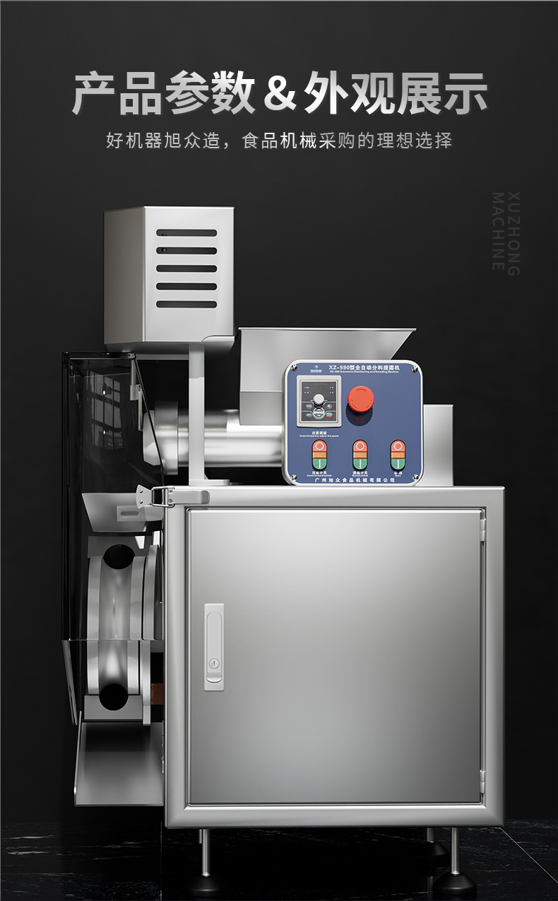XZ-590搓圆机,商用搓圆机,专注细节匠心品质。功能多样,小而美,面包、糍粑、分馅、分团。整机优质不锈钢,采用优质201不锈钢焊接完成。