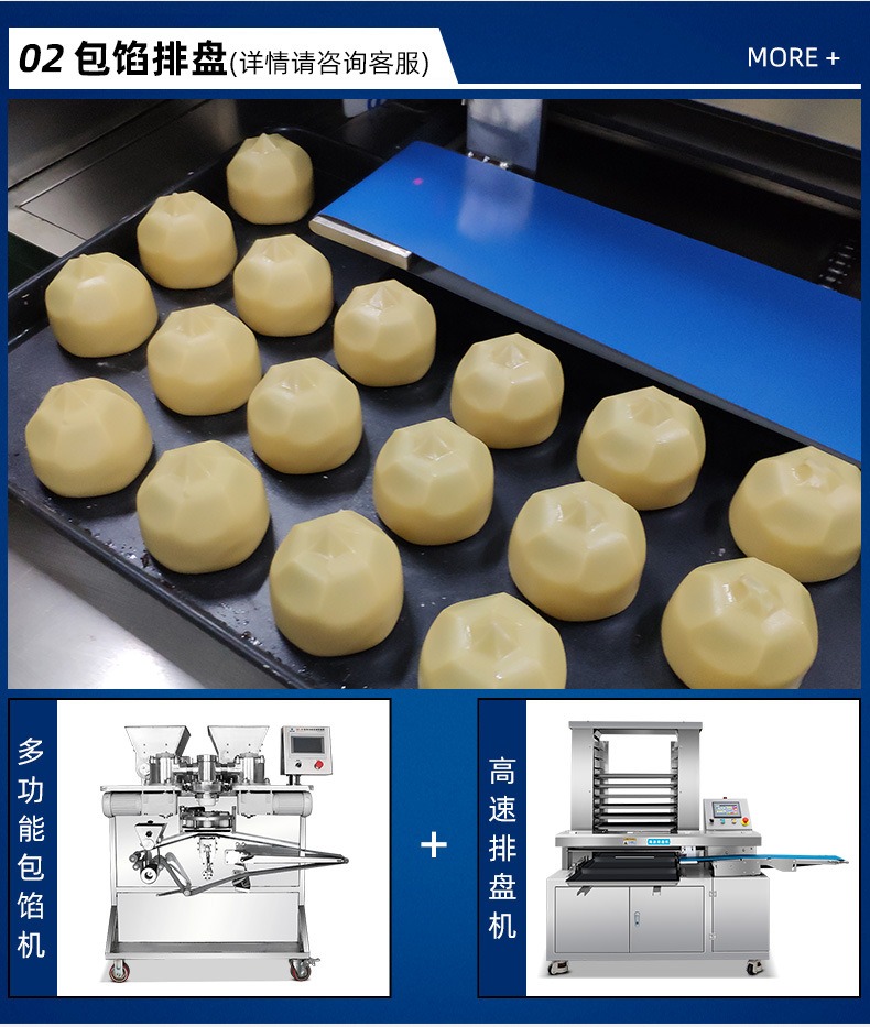 多功能商用高速排盘机,自动化程度高,可根据产品大小自由调节列数、排数,自动将产品自动地排放在烘盘中,操作简单,运行平稳。智能触屏面板。控制系统由三菱PLC和进口触摸屏组成,操作简单方便。具有故障自动诊断,一目了然。