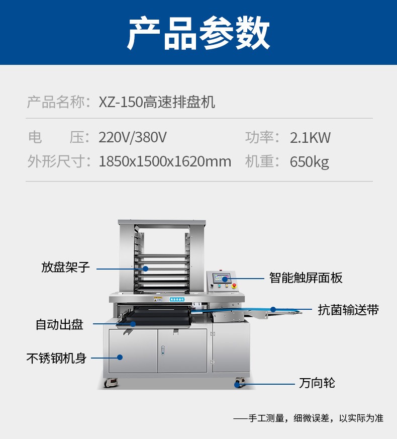 名称多功能商用高速排盘机 电源220V/380V 功率2.1KW 产量 尺寸1850x1500x1620mm 重量650kg 规格 其他