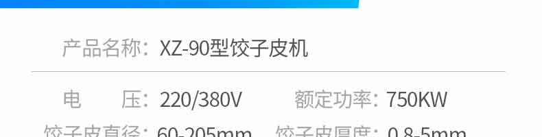 名称90型饺子皮机 电源220/380V 功率750kw 产量 尺寸2420*630*1300mm 重量 规格 其他