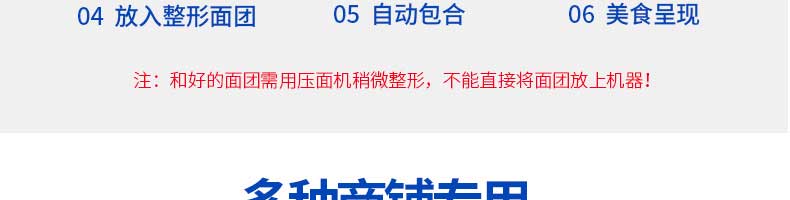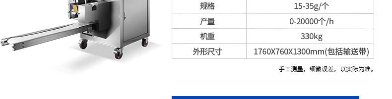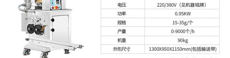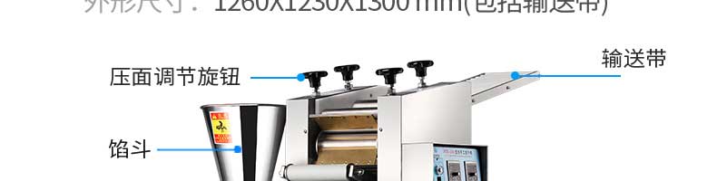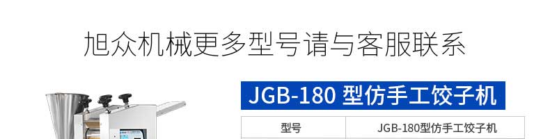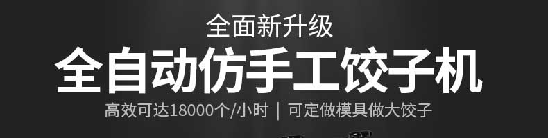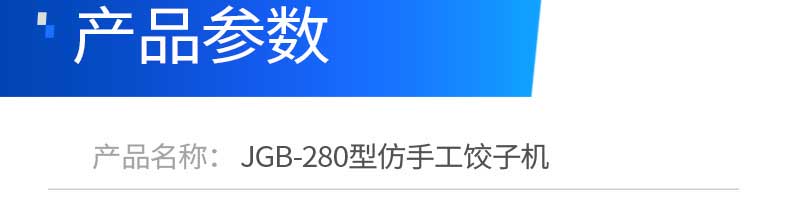 名称JGB-280仿手工饺子机 电源220/380V 功率1.75kw 产量0-18000个/小时 尺寸1260*1230*1300mm 重量270KG 规格 其他