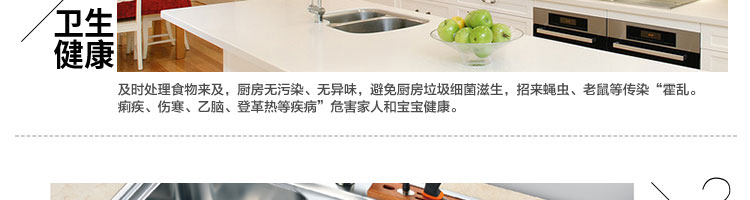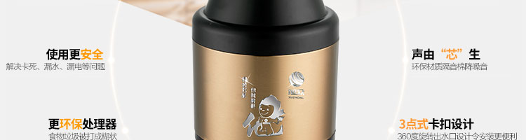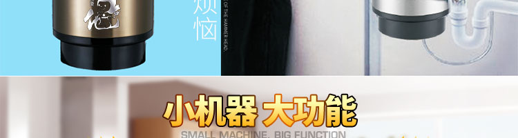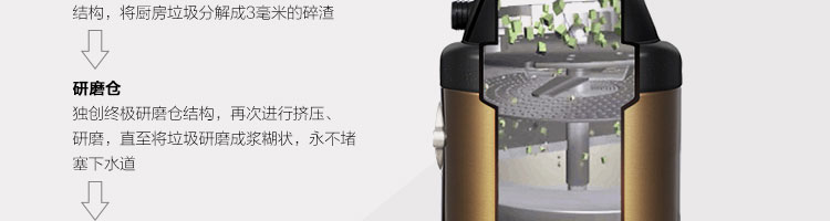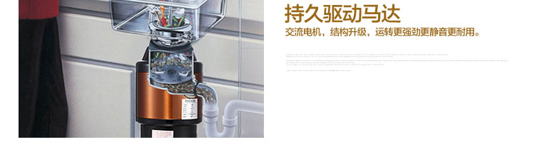 ACLQ56-厨房垃圾处理器,该机器是靠内部结构、零件组合达到处理垃圾的效果,通过碾、压、挤、磨等系统的处理,在十几秒内安全将食物垃圾处理成小于3毫米的颗粒,随着水流排入下水道,使用十分安全。