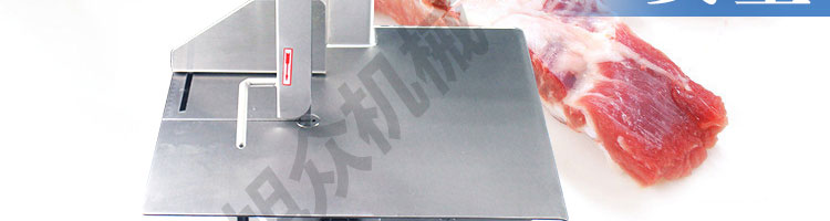JG-210台式锯骨机,适用于各类骨头,冷冻肉,带鱼骨,冰块,冷冻鱼的分割。采用全不锈钢材料制作,具有工作效率高,操作安全的特点。广泛适用于食品加工厂,屠宰场,肉类加工厂等