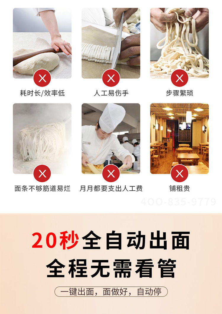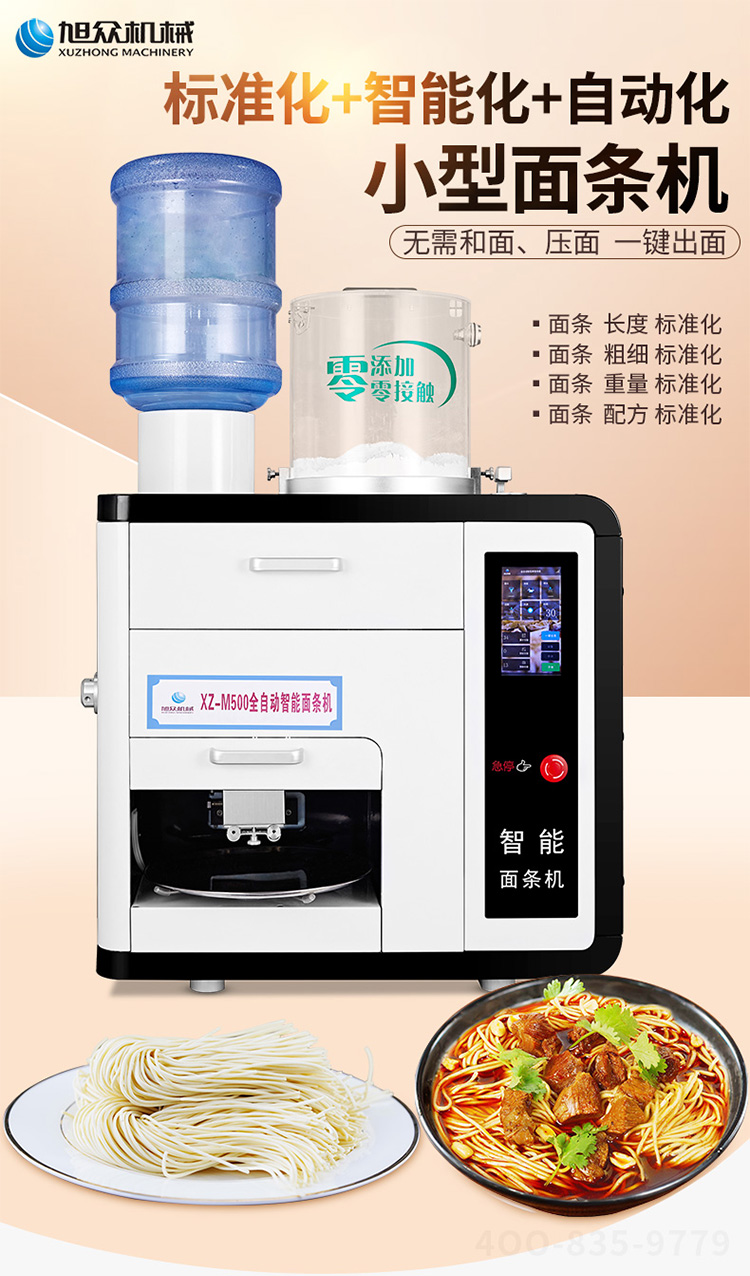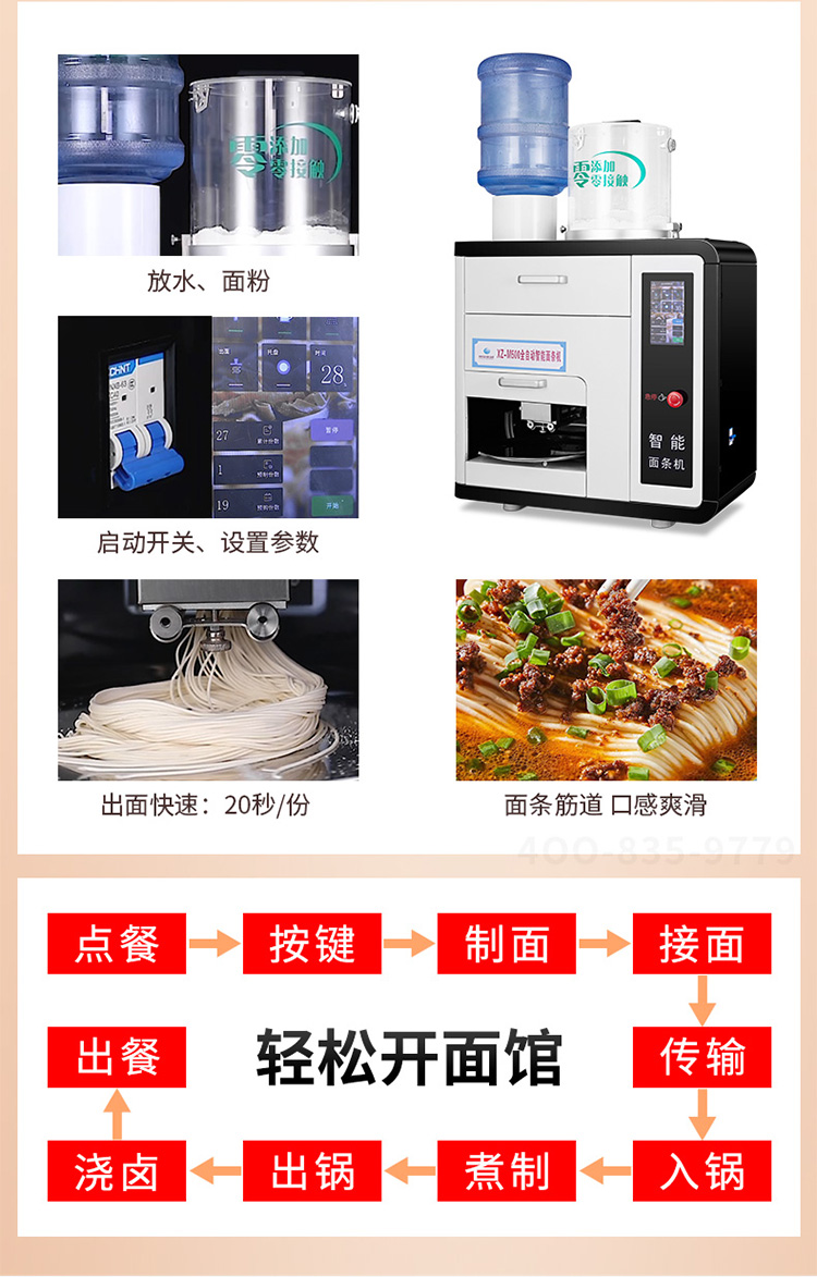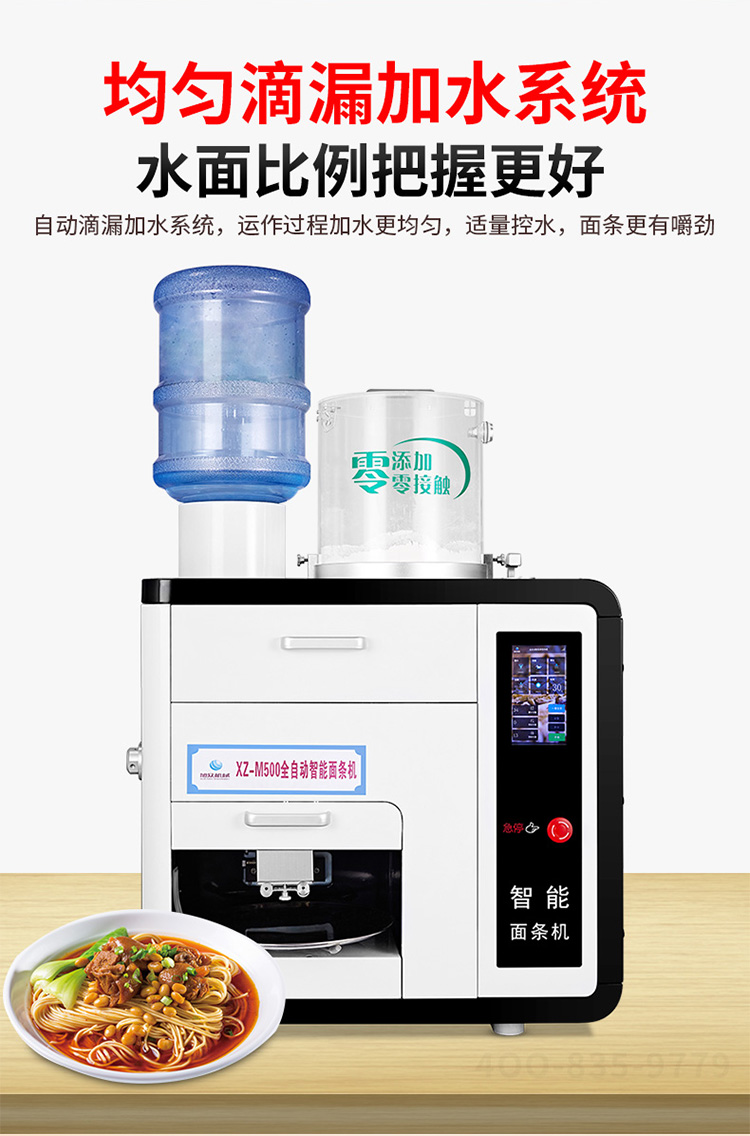全自动商用快速出面电动素面湿面M500台式制面机器,20秒全自动出面,全程无需看管。一键出面,面做好,自动停。均匀滴漏加水系统,水面比例把握更好。自动滴漏加水系统,运作过程加水更均匀,适量控水,面条更有嚼劲。