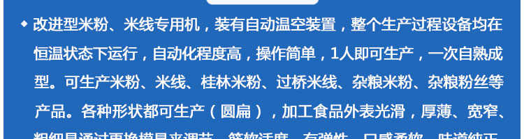 SZ-300多功能米粉机,生产多样性可生产米粉、米线、粉丝、粉条、、年糕、玉米面条、各种杂粮粉丝、各种面条、杂粮面条、彩色面条以及以红薯、玉米、大豆、蚕豆等制成淀粉为原料的等多种食品而且每种食品厚薄、粗细等规格可根据需要任意调整。