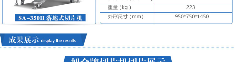 名称SA-350H 全自动落地式切片机 电源220 V 功率1.5kw 产量40转/分钟 尺寸950*750*1450?mm 重量 223 kg 规格 其他