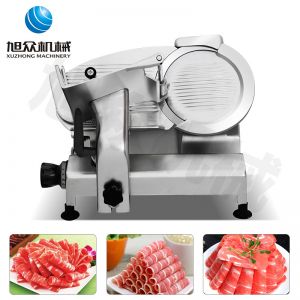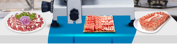 台式全自动切片机,适合切无骨肉类和其他类似榨菜带有弹性的食物,把原材料肉切成肉片,并可自动成卷状。可切牛肉片、羊肉片等