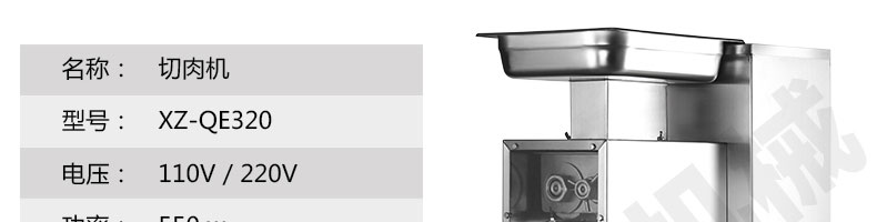 名称XZ-QE切肉机 电源 功率 产量 尺寸 重量 规格 其他