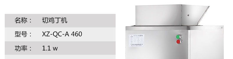 XZ-QC-A460切丁机,切鸡丁机适合将带软骨的禽类,如鸡、鸭、鹅、鸽、鱼类等切成块(丁)状。本好色先生TV免费下载设备工作效率高,采用不锈钢制作,美观耐用,切割快速,少碎骨。