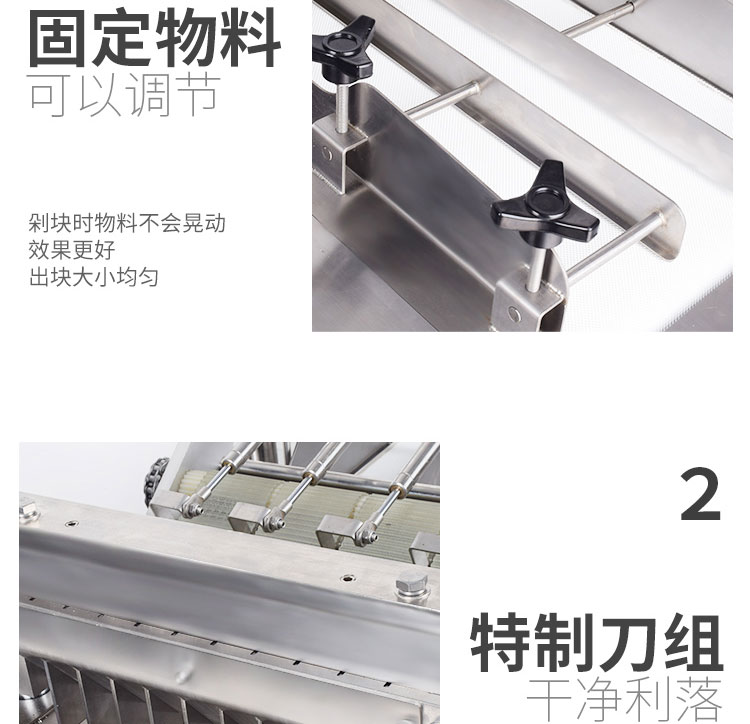 XZW-300鱼禽类剁块机,色禽类剁块机适合切冻肉带骨/不带骨。“加厚”食品级材质安全卫生质量保证。传送带推进物料提高效率节省力气。