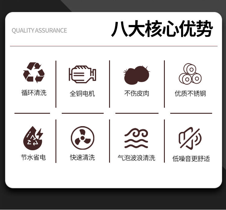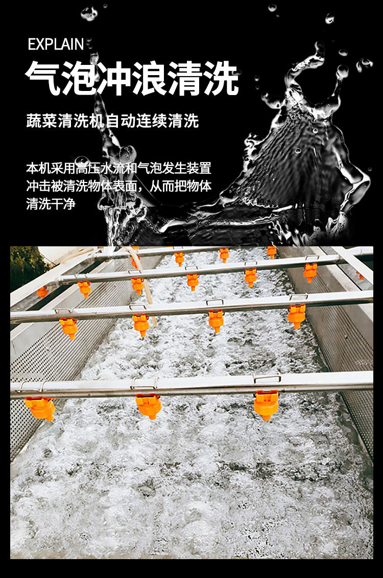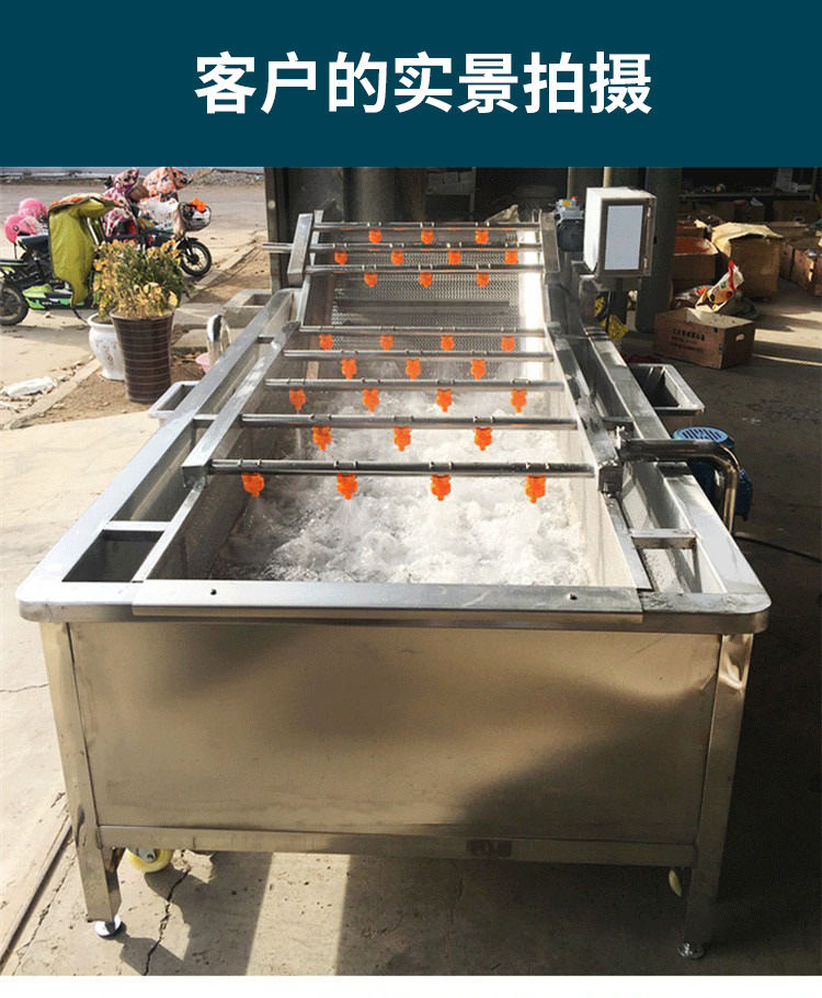 全自动果蔬气泡清洗机,坚固耐用,整机采用质不诱钢。由防锈外层、钢层底、强硬钢外层组成,耐用不易生锈。澎湃大动力源于好,搭载变频电机,强劲动力稳定输出噪音低,好的动力源于好“芯”