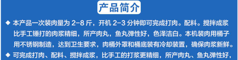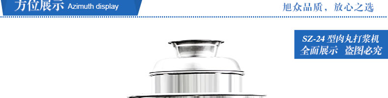 SZ-24型高速肉丸打浆机,高速肉丸打浆机选用不锈钢,生产过程中改善了肉质脂肪纤维,生产出的丸子外表光滑细腻、低脂、口感爽脆、弹性好、韧性好,是潮州肉丸的专用打浆机。