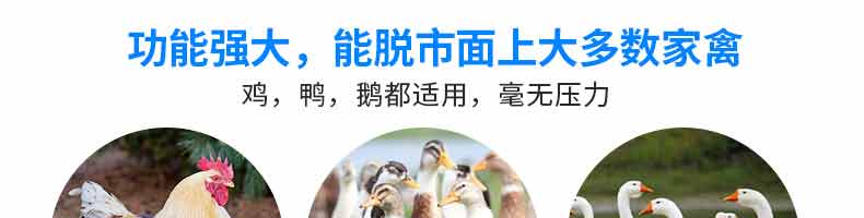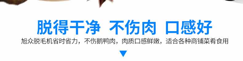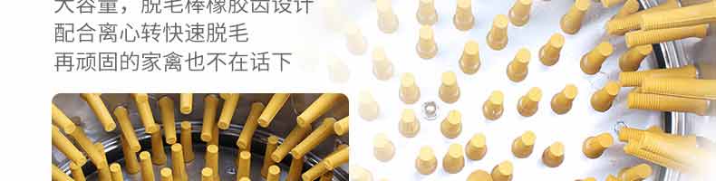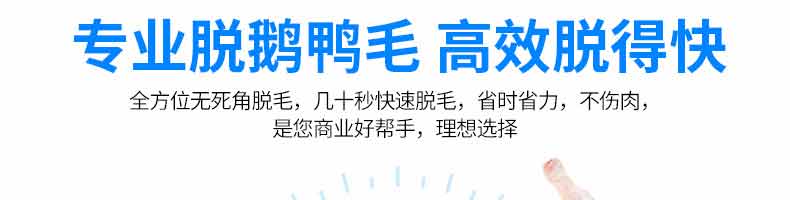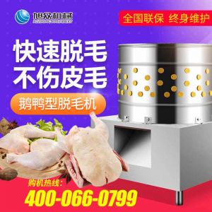 鹅鸭型脱毛机,本机用于鸡、鸭、鹅宰杀后的自动脱毛,还可用于脱姜皮、脱马铃薯皮、脱鱼鳞等农产品。本机操作简单,省力、省时间、工作效率相当于十多个人的手工劳动。