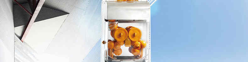2000C-4全自动榨橙汁机,该鲜橙榨汁机采取挤压式,鲜橙经消毒、漂洗后,直接进入机器 ,自动剥皮、榨汁、过滤,现榨现饮,橙汁中无皮、无丝 、无籽、无渣,口感佳,所榨出的橙汁是现榨的原汁。