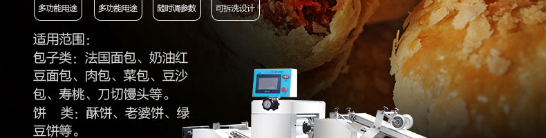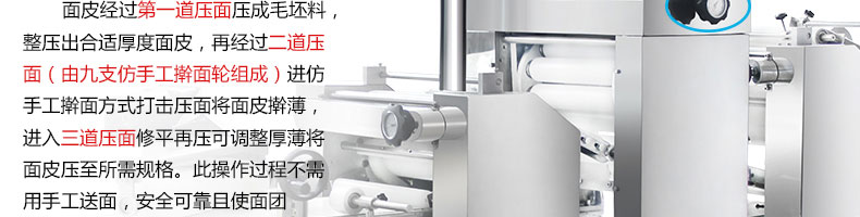 xz-15c三道擀面酥饼机,仿手工制作面食产品的机型,占地面积小,重量轻,运用擀面杖压面和打击面团,以保证高面筋性和面带的密度,并综合考虑面食的口感而研发。可生产东北糖酥饼,东北大香酥饼,苏式月饼,芝麻饼,鲜花饼,老婆饼。购机免费提供工艺技术