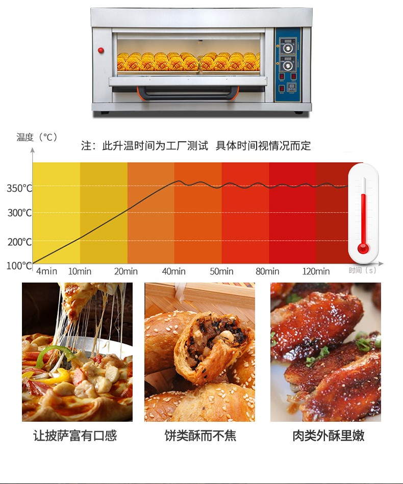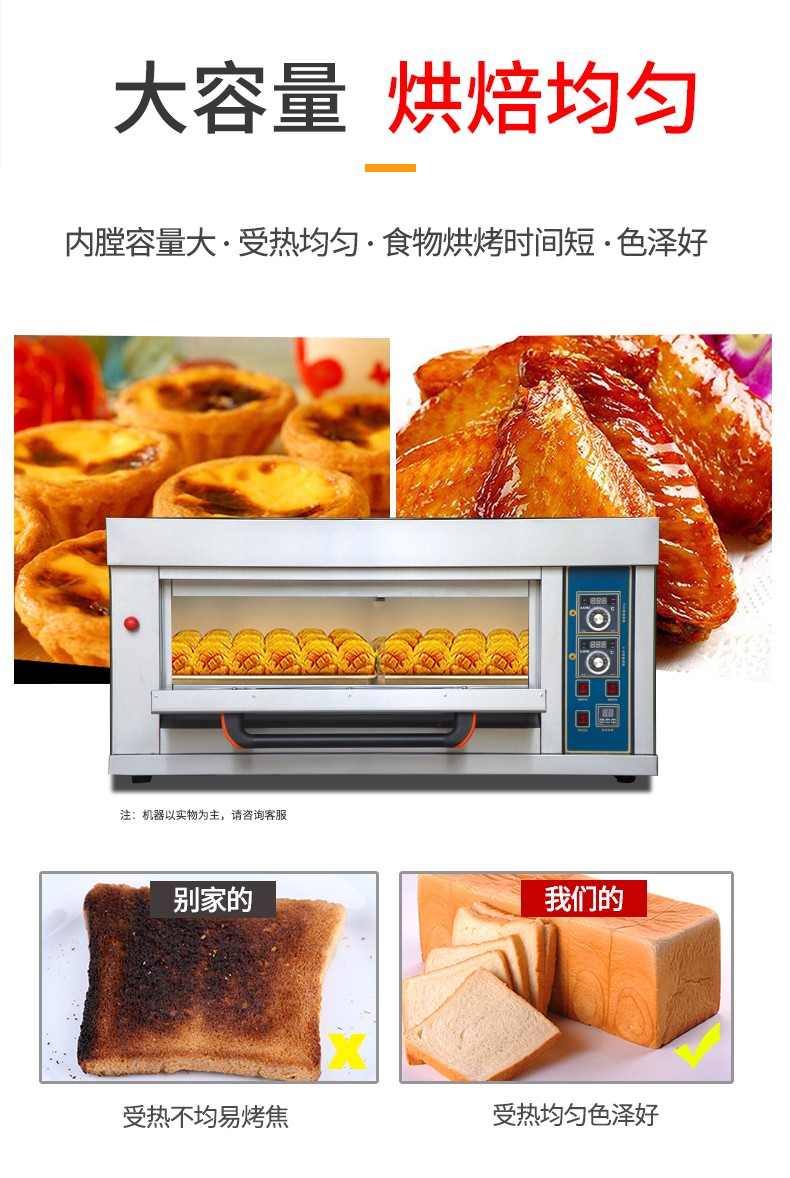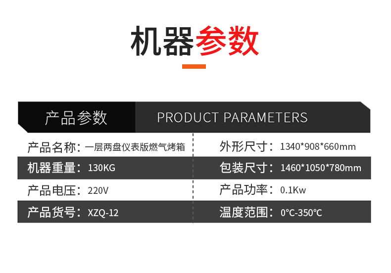 名称一层两盘仪表版燃气烤箱 电源220V 功率0.1KW 产量 尺寸1340*908*660mm 重量130KG 规格一层两盘 其他
