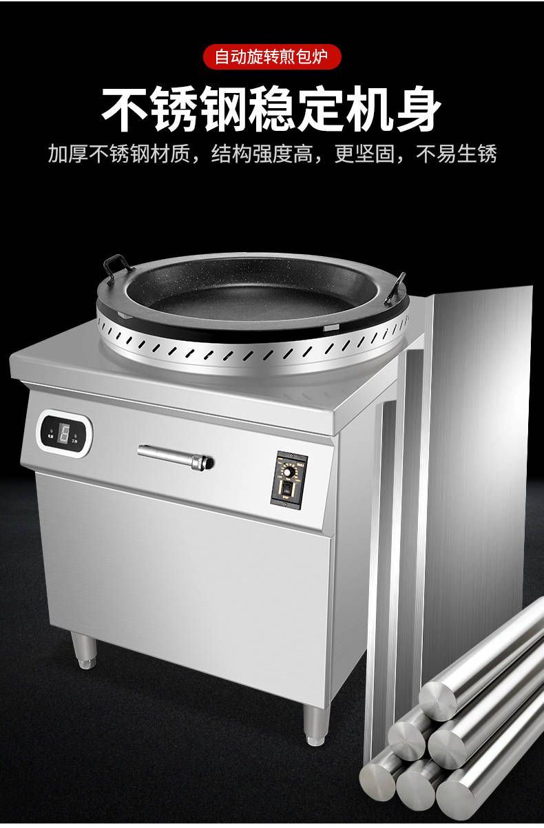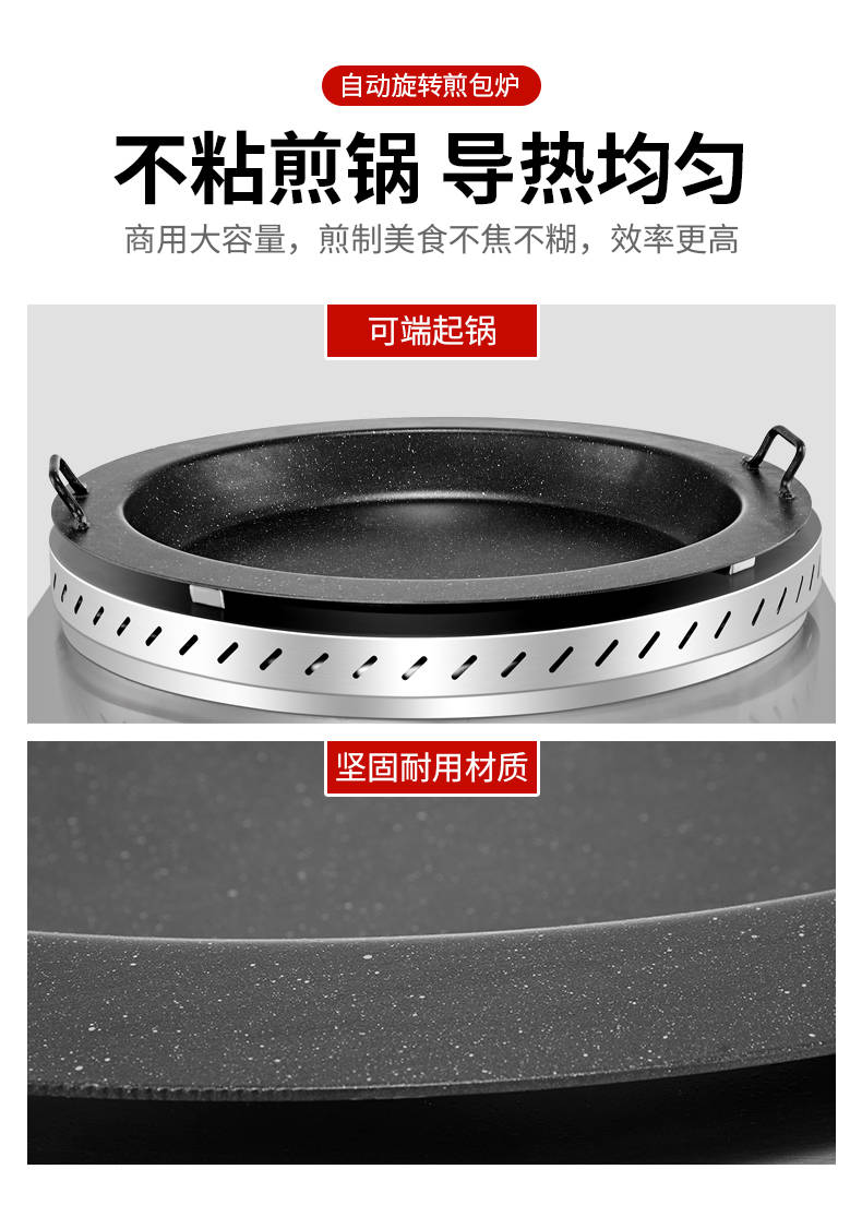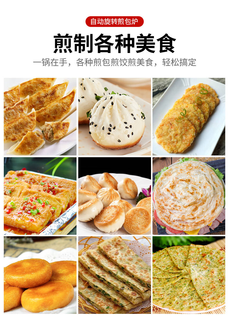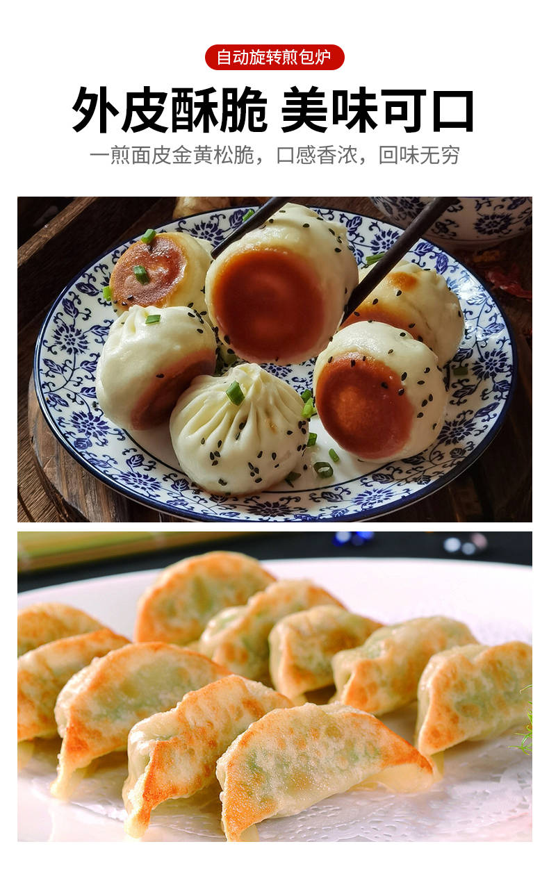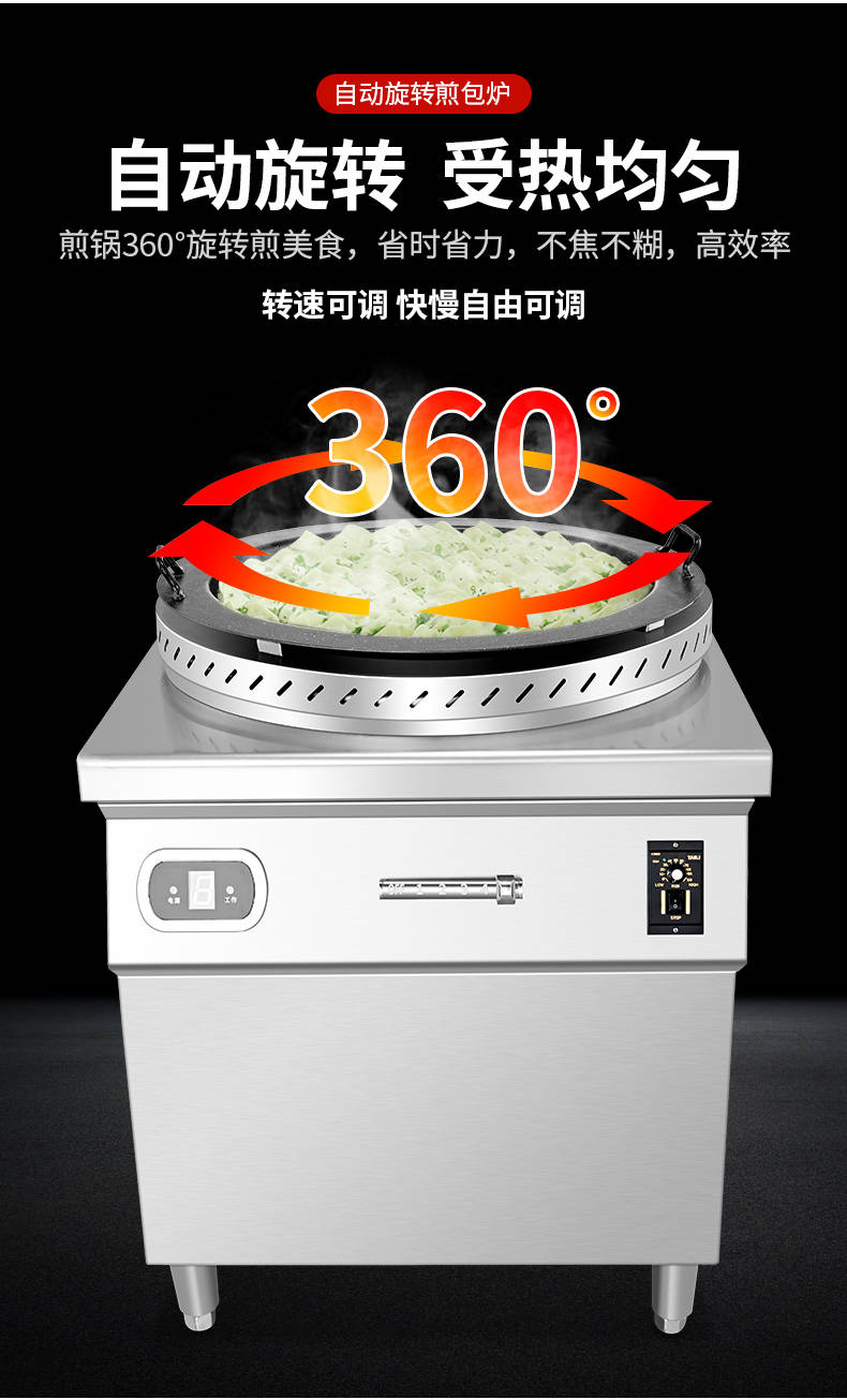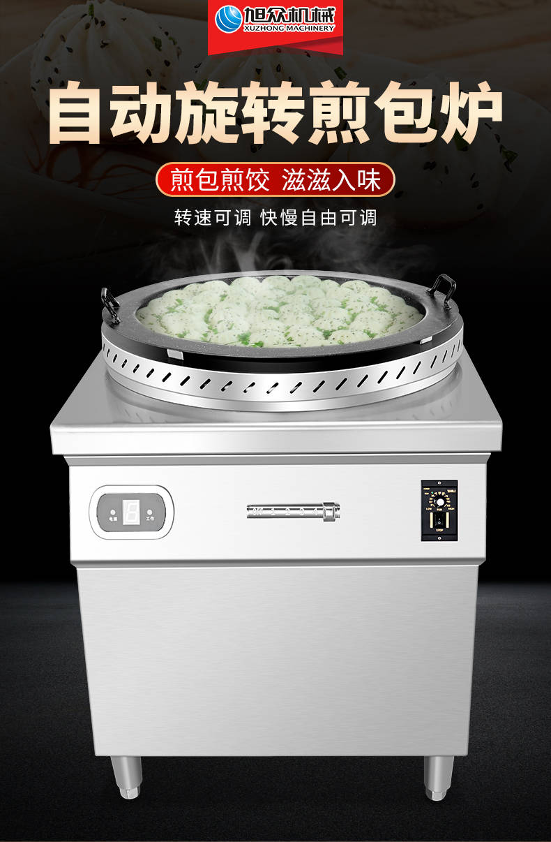 XZ-WSKB自动旋转煎包炉,煎制各种美食锅在手,各种煎包煎饺煎美食,轻松搞定。自动旋转、受热均匀煎锅360°旋转煎美食,省时省力,不焦不糊,高效率转速可调快慢自由可调。