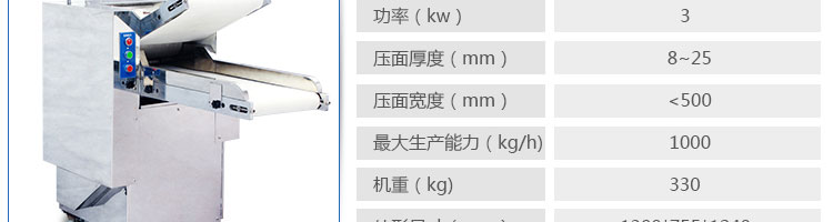 名称500自动压面机好色先生TV免费下载 电源220/380V 220/380V 380V 功率1.5kw 1.5KW 3kw 产量 尺寸外形尺寸570*670*1110mm 620*670*1110mm 750*780*1180mm 重量120kg 125kg 320kg 规格 其他