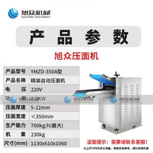 YMZD-350A自动压面,商用全自动压面机快速揉面,自动压面包子饺子慢馒头偭面馆等场所适用不锈钢机身厚薄可调、强劲动力。可以循环压面、揉面,模拟手工揉面,不破坏面筋,面皮的口感细腻。