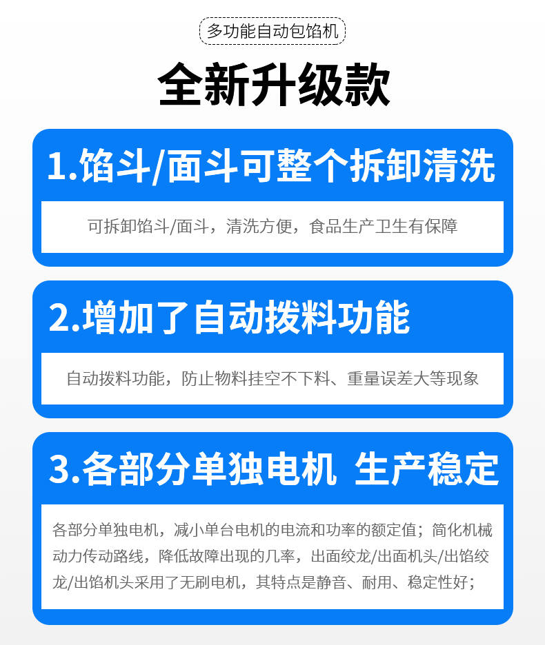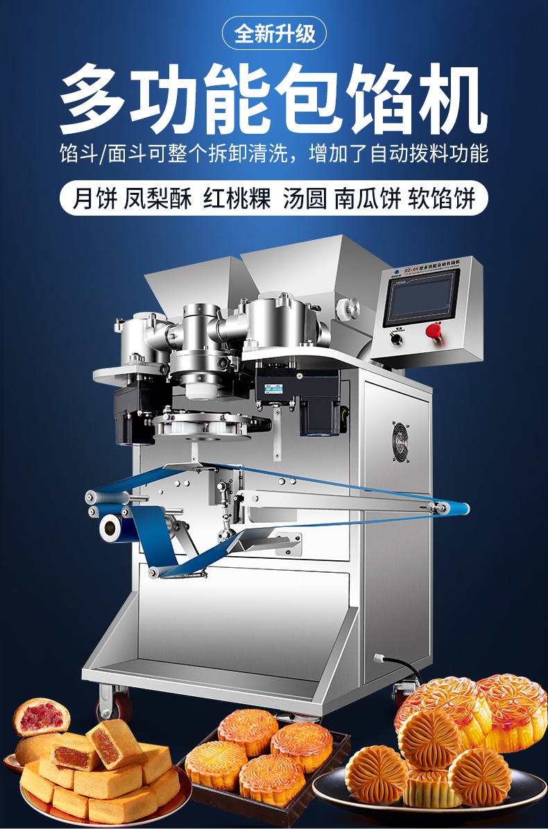 SZ-69型多功能自动包馅机,馅斗/面斗,可整个拆卸清洗,增加了自动拔料功能。月饼凤梨酥红桃裸汤圆南瓜饼软馅饼。在严把质量关的同时,产品的关键部件都选自国内优秀企业。只有不断的提高产品的质量,才能使客户从中获益,而客户的成功最终也就是好色先生网站的成功。