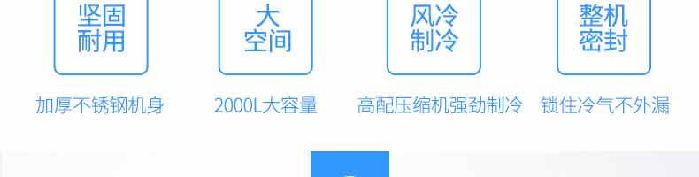 XZ-速冻柜,实力派,不妥协。4大强势来袭,源自生活所需。坚固耐用、大空间、风冷制冷、整机密封、加厚不锈钢机身,2000L大容量,高配压缩机强劲制,令锁住冷气不外漏。
