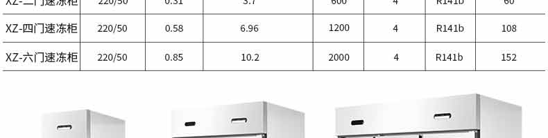 名称XZ-速冻柜 电源220V 功率0.31,0.58,0.85KW 产量联系销售员 尺寸联系销售员 重量60,108,152KG 规格联系销售员 其他